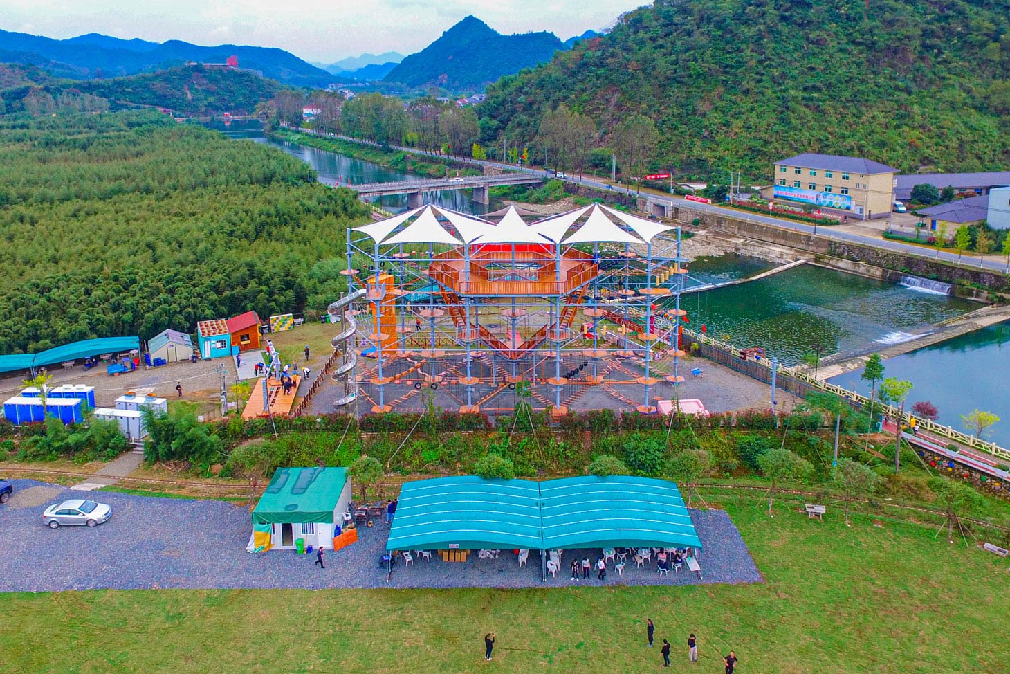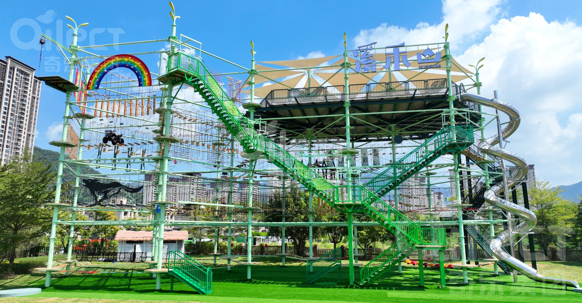 鉆石塔拓展樂園是一項(xiàng)勇敢者的戶外休閑娛樂項(xiàng)目,它通過在鋼結(jié)構(gòu)或木結(jié)構(gòu)立柱間設(shè)置并搭建各種難易不同、風(fēng)格迴異、超強(qiáng)刺激的關(guān)卡障礙活動(dòng)環(huán)節(jié)將立柱連成一條線路,玩家需要通過懸空橋梁、網(wǎng)道、步道、木桶、秋千、索道和其他趣味環(huán)節(jié)等方式進(jìn)行樹木間的探險(xiǎn),通過爬、滑、游、跨、跳、飛等動(dòng)作越過所有障礙,到達(dá)終點(diǎn),讓你體驗(yàn)高空墜落與自由滑翔的快感,感受攀爬與穿越的刺激。